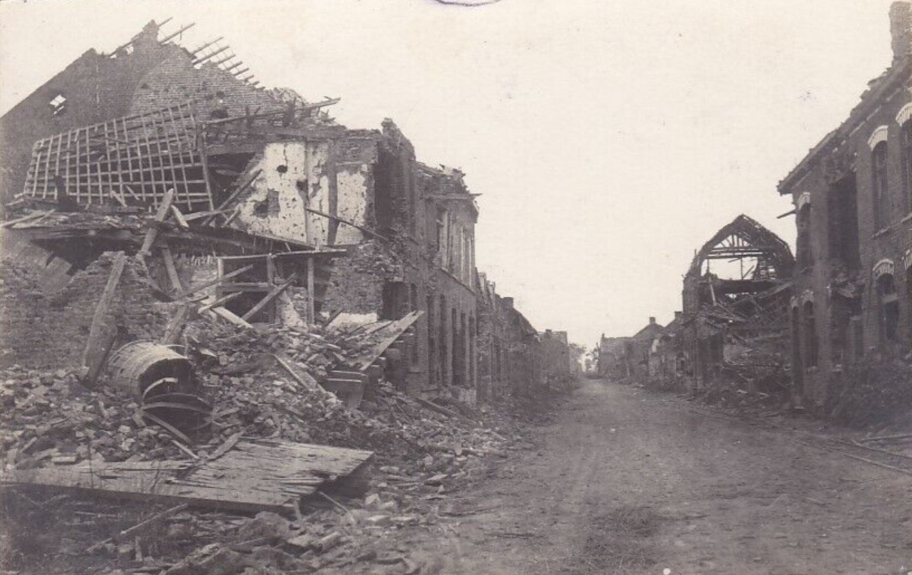 The ruins of the town of La Bassee, lost by British forces in October 1914.